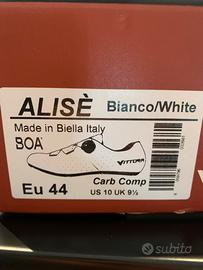 Scarpe per bicicletta da strada, misura 44. Acquistate online a maggio 2025, ma la taglia si è rivelata un pó piccola , ho provato per un paio di mesi ma non riesco ad utilizzarle. Modello con suola in composito di carbonio. Pagate 105€. Come nuove.