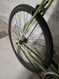 Scatto fisso artigianale su base Bianchi. Solo i cerchi sono costati 230€. Vedo per esigenze di spazio. Prezzo non trattabile.