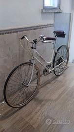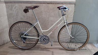 Americana anni 70, del 1979, telaio step through, con sistema Shimano FFS, cioe ruota libera sulla guarnitura, si puo camviare mafcia senza pedalare, sella Brooks B68 nuova, manopole in pelle marrone, manubrio non originale ma includo il suo piu largo, segni del tempo, telaio riverniciato tanti anni fa, copertoni Kenda nuovi e camere aria Schwalbe nuove.NON SPEDISCO, solo consegna a mano a Treviso.