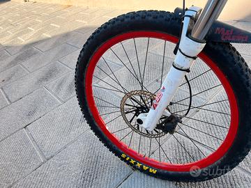 Vendo svott voltage fr 20 taglia L Dimensioni ruote 26 pollici forcelle anteriori rock Shok 200 mm posteriore fox regolabile da 180 mm a 200 mm disco freno anteriore 203 mm con pompa avid posteriore da 200 mm con pompa shimano deore appena stati sostituiti i pedali e le manopole la bicicletta è perfettamente funzionante con però alcuni segni di usura ad esampio graffi perfetta per chi vuole iniziare ad anasare in bici facendo dh o enduro
