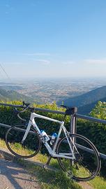 La bicicletta si presenta in ottimo stato di conservazione in quanto utilizzata da vero amatore e appassionato, bicicletta molto leggera nonostante la taglia grande, la bicicletta è stata riverniciata da Roncelli per gusto personale e per dargli una rinfrescata e un tocco moderno. colorazione bianco perlato con loghi e scritte nere (colore spaziale sotto il sole), con l'occasione della riverniciatura è stata eseguita una profonda manutenzione, movimento centrale, serie sterzo, pattini freni, guaine e fili completi, tutto sostituito in maniera preventiva. la bicicletta ha ricevuto un upgrade al deragliatore posteriore passando da ultegra 6800 a ultegra r8000 in modo da poter montare un pacco pignoni 11-32 fino ad un massimo di 11-34, le corone anteriori sono 50-34 ma ho ancora il 52-36 se si volesse rimontare.