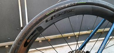 •Ruote: Deda Elementi SL45 in carbonio ad alto profilo (45 mm), larghezza esterna 25 mm, ultraleggere con mozzi ceramici per scorrevolezza top e gomme Pirelli tubeless.