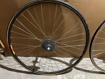 Incluso Garmin ( senza carica batterie) e Coppia di ruote Ksyrium Super light con copertone e Dura-Ace CS-7900 come da foto.