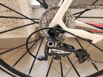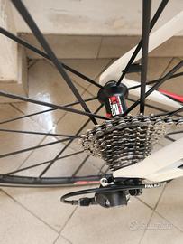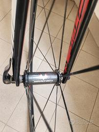 Causa cambio tipologia di bici, Vendo bici da corsa scott addict r2 modello 2012. Telaio in carbonio ultra leggero, forcelle in carbonio, cerchi e manubrio in carbonio, cambio e freni shimano dura ace. Perfettamente funzionante ed esteticamente ottima con qualche segno di usura fisiologico. Il prezzo e' gia' fortemente scontato rispetto a modelli usati equivalenti in vendita e quindi non e' trattabile. Nonostante la R2 inizi ad avere qualche anno rimane tuttora una bici in grado di competere e spesso superare modelli attuali. Il telaio e' misura L. N.B: il reggisella integrato nel telaio in carbonio e' stato adattato (accorciato di pochi cm) adatto a persone di altezza tra 178 e 185.