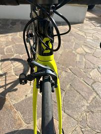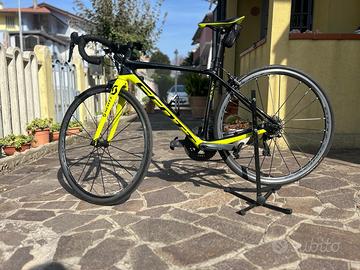 Vendo bici Scott Addict rc 10 misura xxs per altezze da 1.50/1.60 ideale per donna o per le categorie giovanissim (eventualmente rapporti per categoria G5/G6) , montata con gruppo Shimano Ultegra , guarnitura 50/34, pedivelle 170 mm, rapporti 11/30 . E' in buone condizioni, lmanutenzione sempre svolta in maniera scrupolosa , non presenta botte , crepe o altro .Ha qualche segno dovuto all'uso . Ruote originali syncross in alluminio . Se uno vuole sono disponibili ruote in carbonio marca FFWD profilo da 40 mm con mozzi Dt Swiss 240 per tubolari tutte in ottimi condizioni .Nella vendita non sono compresi i pedalli .