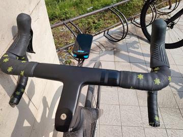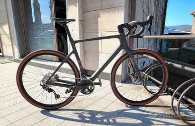 Vendo splendida Scott Addict Gravel taglia L ''customizzata'' con ruote ad alto profilo in carbonio da 60mm e manubrio aerodinamico Deda Alanera sempre in carbonio con cavi completamente integrati nel telaio per un aspetto pulito e ordinato. Naturalmente consegno anche le ruote già gommate e il manubrio originali in alluminio, per vedere l'aspetto originale guardare le immagini. La bici è come nuova in quanto non è stata praticamente usata se non per un breve tratto giusto per provarla. Monta trasmissione Shimano GRX meccanico 2x12 con rapporti 46-30 anteriore ed 11-36 posteriore, completamente in carbonio anche il reggisella e i portaborracce , peso 8 kg senza pedali: un vero gioiello!|