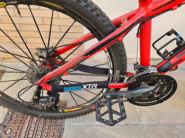 bici in alluminio ma con componenti di livello come cerchi mavic slr , freni xtr, forcella sid world cup. reggisella carbonio, cambio con tripla corona, copertoni latticizzati rocket ron.