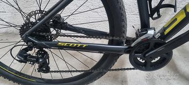 Condizioni perfette, nessuna caduta, sempre tenuta in modo maniacale. La bici è stata usata per circa 900 km, praticamente inutilizzata. Taglia M Scheda tecnica: Telaio Aspect 900-700 series / Alloy 6061 Custom Tubing BSA73 / Internal Cable Routing / replaceable hanger Forcella Suntour XCE28 100mm travel Deragliatore posteriore Shimano Tourney RD-TX800 16 Speed Deragliatore anteriore Shimano FD-M315-TS / 31.8mm Leve del cambio Shimano SL-M315R-fire plus / 2 way releasew/gear indicator Guarnitura Prowheel TM-CY01 36X22 w/CG Movimento Centrale Feimin FP.B908N BB73 / square taper Catena KMC Z-8.3 Cassetta Sunrace CSM55 8AV / 11-34T Freni Clarks Clout Hydr. Disc Brakes Disco del freno Clarks / 6 bolt / F&R 160mm Manubrio HL MTB-AL-312BT / 720mm / black / 12mm rise Syncros Pro Grip Attacco manubrio TDS-C301-8FOV / 10° / 31.8 / Black Reggisella HL SP C207 31.6mm / 350mm / Black Sella Selle italia Serie sterzo Syncros OE Press Fit / 1 1/8"OD 50mm / ID 44mm Mozzo anteriore Formula DC-19 FQR Disc Mozzo posteriore Formula DC-25 8s RQR Disc Raggi 14 G / stainless / black Cerchio Syncros X-20 Disc 32H / black Gomma anteriore Kenda Booster 2.4" / 30TPI Gomma posteriore Kenda Booster 2.4" / 30TPI