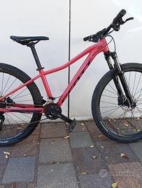 vendo Scott Contessa Active, taglia xs (equivalente ad una S, per altezze fino a 1,60). Ruote da 27,5. tenuta bene, freni a disco e forcella ammortizzata regolabile e bloccabile. qualche graffio dovuto al portabici e al carico/scarico dalla macchina. di listino 799,00 euro