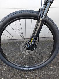 Telaio in alluminio Tg. M Focella Suntour XTC30 100 mm. Guarnitura 30T Cambio Shimano Cues 11 velocità 11-50 Freni Tektro a disco idraulici Pneumatici Maxxis Rekon Race 29x2.4"