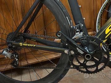 Vendo bici perfettamente funzionante montata sram rival completa di doppia coppia ruote (originali syncros/miche carbonio profilo 50/60). Taglia s Posso fornire pedali look o shimano Perfetta per ragazzi/e neofiti o triathleti.