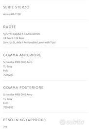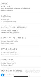 Taglia M(54) Acquistata settembre 2024 Ancora in garanzia ufficiale per 5 anni Km percorsi 1000 Vendo a parte garmin 530 +varia Preferisco consegna a mano