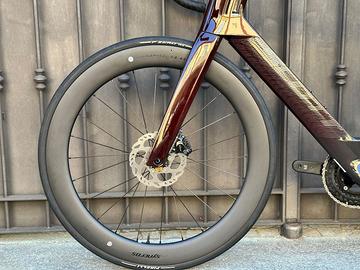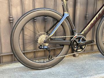 L’aggiunta delle ruote in carbonio da 60mm la trasforma in una vera arma taglia vento. Un mix perfetto di tecnologia, rigidità e design racing, pensato per chi vuole spingere sempre al massimo.