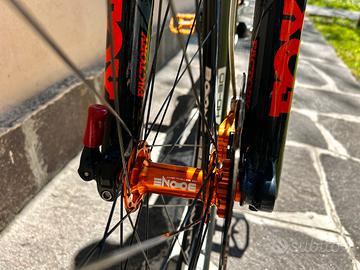 Vendo la mia Scott Genius in carbonio taglia M in ottime condizioni, sarò di parte ma di estetica e funzionalità é imbattibile. Di listino veniva 4700eu ma é stata modificata e migliorata in tutto per un totale di oltre 8500 euro. Perfetta sia in salita che in discesa: telaio in carbonio e comando al manubrio per bloccare l’ammortizzatore, pesa solo 13,5kg circa per cui si pedala benissimo. In discesa diventa una vera enduro con ruote da 29 e forcella Fox kashima da 150mm di escursione che da una gran confidenza e si mangia anche i sentieri più difficili. Le migliorie apportate sono: - Forcella Fox Factory 36 Float con preparazione Kashima: 1250eu - Cerchi e mozzi (in ergal in tinta) Boone 622 gravity HD30 da 29”: 800eu - Freni Hope Tech 3 V4 a due pompanti in ergal ricavato dal pieno: 550eu - Reggisella telescopico Fox Kashima 125mm: 460eu - Cassetta Sram Eagle 500% 12v: 360eu - Pedali AE05 HT in ergal arancio: 120eu - Sella Prologo: 100eu - Copertoni messi da pochissimo maxxis ant e vittoria post: 120eu - Attacco manubrio Fun: 70eu - Manubrio: circa 70eu - Salsicciotto salva cerchio: 40eu - Entrambi le ruote tubeless - Corona ovale in ergal arancio - Tubi freni in treccia areonautici - Pastiglie e copertone dietro appena messi - Pellicola protettiva sulle parti esposte di telaio e carro Purtroppo negli ultimi anni non l’ho più usata per colpa dell’ebike e del poco tempo. Tenuta maniacalmente, sempre in garage, lavata e ingrassata dopo le uscite. Taglia M, io sono 178cm Per foto aggiuntive o qualunque informazione non esitate a contattarmi! Le componenti rimanenti della bici sono: - Cambio Sram GX e X01 Eagle 12 speed - Ammortizzatore Fox Nude TR EVOL 150mm - Guarnitura: Scott Custom Solo di upgrades ci sono quasi 4000eu. Ad esempio i cerchi sono pari al nuovo, la forcella non ha un segno e così molte delle componenti sopra citate… prezzo affare, leggermente trattabile! Enrico. Bike trek giant canyon santa cruz downhill dh cube