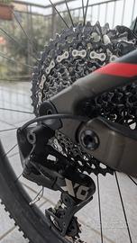 L’allestimento comprende forcella Fox 34 Float Rhythm da 150 mm, ammortizzatore Fox Nude con TwinLoc, trasmissione Eagle 1×12 con cambio SRAM X01, freni Shimano MT520 a 4 pistoncini, ruote Syncros da 29” e reggisella telescopico Fox Transfer. upgrade dischi galfer, flottante all'anteriore.