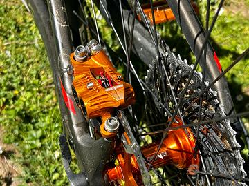 Vendo la mia Scott Genius in carbonio taglia M in ottime condizioni, sarò di parte ma di estetica e funzionalità é imbattibile. Di listino veniva 4700eu ma é stata modificata e migliorata in tutto per un totale di oltre 8500 euro. Perfetta sia in salita che in discesa: telaio in carbonio e comando al manubrio per bloccare l’ammortizzatore, pesa solo 13,5kg circa per cui si pedala benissimo. In discesa diventa una vera enduro con ruote da 29 e forcella Fox kashima da 150mm di escursione che da una gran confidenza e si mangia anche i sentieri più difficili. Le migliorie apportate sono: - Forcella Fox Factory 36 Float con preparazione Kashima: 1250eu - Cerchi e mozzi (in ergal in tinta) Boone 622 gravity HD30 da 29”: 800eu - Freni Hope Tech 3 V4 a due pompanti in ergal ricavato dal pieno: 550eu - Reggisella telescopico Fox Kashima 125mm: 460eu - Cassetta Sram Eagle 500% 12v: 360eu - Pedali AE05 HT in ergal arancio: 120eu - Sella Prologo: 100eu - Copertoni messi da pochissimo maxxis ant e vittoria post: 120eu - Attacco manubrio Fun: 70eu - Manubrio: circa 70eu - Salsicciotto salva cerchio: 40eu - Entrambi le ruote tubeless - Corona ovale in ergal arancio - Tubi freni in treccia areonautici - Pastiglie e copertone dietro appena messi - Pellicola protettiva sulle parti esposte di telaio e carro Purtroppo negli ultimi anni non l’ho più usata per colpa dell’ebike e del poco tempo. Tenuta maniacalmente, sempre in garage, lavata e ingrassata dopo le uscite. Taglia M, io sono 178cm Per foto aggiuntive o qualunque informazione non esitate a contattarmi! Le componenti rimanenti della bici sono: - Cambio Sram GX e X01 Eagle 12 speed - Ammortizzatore Fox Nude TR EVOL 150mm - Guarnitura: Scott Custom Solo di upgrades ci sono quasi 4000eu. Seguo i prezzo che ci sono online ma ad esempio i cerchi sono pari al nuovo, la forcella non ha un segno e così molte delle componenti sopra citate, prezzo leggermente trattabile. Enrico. Bike trek giant canyon santa cruz downhill dh cube