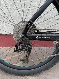 Vendo Scott Genius LT bi-ammortizzata molto ben tenuta, con telaio in carbonio HMX di alta qualità. La bici è tecnicamente perfetta e pronta all'uso. Caratteristiche e Stato: • Sospensioni: Forcella Fox 36 e ammortizzatore Scott Equalizer. Entrambi funzionano perfettamente, incluso il sistema TwinLoc (blocco dal manubrio). • Peso: Molto leggera, circa 14,2 kg (pedali inclusi). • Meccanica: Il cambio è preciso e i freni rispondono come nuovi. Il reggisella telescopico idraulico funziona perfettamente. • Pneumatici: Schwalbe Hans Dampf con ottimo profilo su cerchi DT Swiss (26 pollici). • Telaio: Integro dal punto di vista tecnico; presenta alcuni graffi estetici dovuti al normale utilizzo. Specifiche: • Materiale: Carbonio HMX net Carbon Fiber • Componenti: Mix SRAM X0/X9 e freni Formula • Pedali e portaborraccia inclusi.