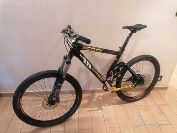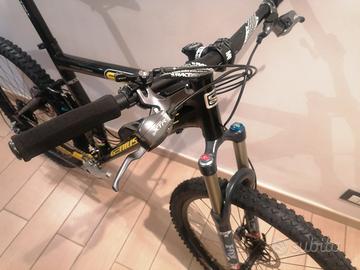 Mtb da 26" ormai da collezione eletta miglior all mountain nel 2005 Matathon concept Taglia Media Vintage Telaio in carbonio CR1 Carro in alluminio Montata tutta Shimano XTR/XT Monocorona Hope Cambio XTR 9v Comandi dual control XTR Freni XTR Guarnitura XT RUOTE custom ZTR OLYMPIC con Mozzi XT Copertoni Continental Mountain king Reggisella Ritchey WCS Carbon SELLA WTB Silverado Manubrio e attacco RACE FACE Evolve Forcella FOX TALAS RC con Escursione variabile da 90 a 130 mm Ammortizzatore SCOTT TC da 125 mm con Manettino sul manubrio per le 3 posizioni (lavora in estensione anziché in compressione) Telaio immacolato / condizioni OTTIME (solo qualche lieve segno sulle pedivelle e sul fodero basso dx) Tutti i componenti sostituiti sono NUOVI PREZZO NON TRATTABILE