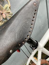 Bici Gravel urban trekking con cambio al mozzo shimano alfine 1x8v Telaio in alluminio taglia L (53 verticale, 57 orizzontale) ruote da 29” Sella vintage in cuoio originale PerJohn Made in France , manubrio tipo corner bar molto comodo