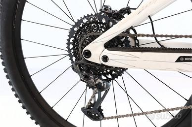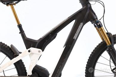 Bicicletta elettrica a doppia sospensione | Telaio in carbonio | Taglia L | Ruota da 29" | Cambio: SRAM X01 | 12 velocità | Cassetta: 10-52-T | Comandi cambio: SRAM GX | Pedivelle: Praxis | Corona: 34-T | Freni: Shimano XT | Ruote: Syncros Revelstoke-E | Assi Boost: No | Attacco manubrio: Carbonio | Manubrio: Carbonio | Reggisella: Telescopico Fox Transfer Kashima | Forcella: Fox 38 Factory Kashima (140mm) | Ammortizzatore: Fox Nude | Motore: Bosch Performance Line CX | Capacità batteria: 750Wh | % batteria: 90 | Km: 4360 | Autonomia: Maggiore di 630Wh
