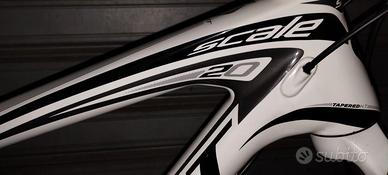 Vendesi MTB scott scale 20 ruote da 26 dt swiss coperture tubeless Continental top di gamma già latticizzate misura telaio s/m in carbonio gruppo xt 10v doppia corona forcella Rox fox da 32 ad aria con comando remoto leve manubrio in carbonio pedali scelta tra SPD, look montati in foto o da MTB ciclo computer GPS bryton prezzo 700,solo contatto telefonico