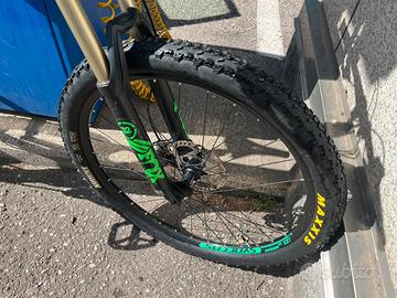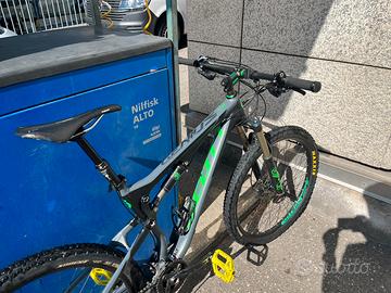 Bici perfetta. Ho appena speso 180 Euro per cambiare catena, regolare cambio e revisione forcella anteriore e sotrosella. La scorsa stagione ho cambiato pacco pignoni e corone anteriori. Specifiche SCOTT Genius 740 16Telaio Genius Alloy 6061 custom butted Hydroformed tubes / tapered Headtube BB92 / IDS SL DM dropout for 142x12mm U-Mono Link / rear 180PM BB height adj.Escursione 700 Series: Front 150mm Rear 150 / 3 modes / Shock 200X57 900 Series: Front 130mm Rear 130 / 3 modes / Shock 190X50Forcella FOX 32 Float Performance Air FIT4 3-Modes 15mm QR axle / tapered steerer Lockout / reb. Adj.Ammortizzatore FOX Float Performance Elite / 3 modes DPS / Lockout - Trail ndash; Descend reb. Adj.Sistema remoto SCOTT TwinLoc Remote Technology 3 modes front and rearSerie sterzo Syncros Comp / Tapered 1.5 - 1 1/8 semi integ. OD 50/61mm / ID 44/55mmCambio Shimano XT RD-M781 SGS / DM Shadow Type / 20 SpeedDeragliatore anteriore Shimano Deore FD-M618-E / DMComandi Shimano Deore SL-M610-I Rapidfire Plus / 2 way release IspecsFreni Shimano SLX M675 Disc 180/F and 180/Rmm SM-RT54 CL RotorGuarnitura Shimano FC-M627 2-piece Design 700 Series: 38x24 T / 900 Series: 36x22 TMovimento centrale Shimano BB-MT500-PA / shell 41x89.5mmManubrio Syncros FL2.0 T-Bar Alloy 6061 D.B. / T shape Flat / 9 / 740mmAttacco manubrio Syncros TR2.0 6061 / 4D forged / oversize 31.8mm 1 1/8 / 700 Series: 6 / 900 Series: -6Canotto reggisella Syncros FL2.5 / 31.6mmSella Syncros XM2.0 / CROM railsMozzo anteriore Shimano HB-M618 CL / 15mmMozzo posteriore Shimano FH-M618 CL 142x12mm / DT RWS axleCatena KMC X10Cassetta Shimano CS-HG50-10 11-36 TRaggi Stainless Black 15G / 1.8mmCerchi Syncros X-23 / Eyelets / 32HCopertoni Schwalbe Front: Nobby Nic / 2.25 Rear: Rocket Ron / 2.25 Kevlar bead / Performance SeriesPeso appros. KG 12.7