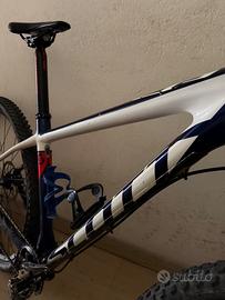Vendo come da titolo MTB Scott Scale 910 misura M, montata interamente Shimano XT, monocorona gruppo posteriore 11 velocità, forcella Fox 32 con bloccaggio e sbloccaggio dal manubrio, freni a disco XT, ruote DTSwiss, copertoni Vittoria Barzo nuovi.