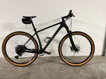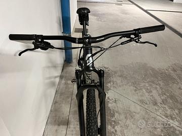 Vendo Scott Scale 940 taglia L perfettamente tenuta, senza segni di usura, pochissimi Km. Solo consegna a mano. Telaio in carbonio HMF nero metallizzato opaco. Forcella RockShox Judy 100 mm con comando a distanza a 2 settaggi Deragliatore SRAM NX-SX Eagle 12 velocità Freni a disco Shimano Cerchi 29” - pneumatici Schwalbe