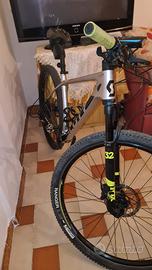 Vendo per inutilizzo una bici mtb Scott scale 920 in carbonio montaggio da catalogo sram gx 12 velocità monocorona, forcella fox da 32 mm con 100 mm di escursione regolabile in 3 posizioni del bloccaggio... comprata nuova il 2020 e ha all'incirca 1200 km. La misura è una L adatte per persone alte da 1,73/1,83 per info basta chiedere