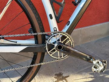 Scott scale gravel con manubrio flat con appendici. Su base scott scale rc. Tutta carbonio . 9 kg . Taglia L. Vendo a 1500 euro senza misuratore di potenza. 1750 con misuratore. Corona 36 , pignoni 10/51. Meccanicamente perfetta. Trasmissione nuova ( pignoni , catena e corona) . Nuovo anche il movimento centrale.