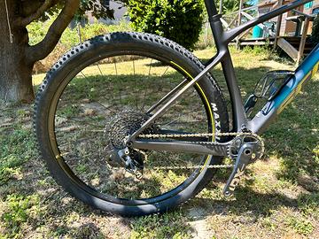 Scott Scale Rc World Cup Tg. L, telaio in carbonio HMX, Forcella Rock Shox SID SL Select+ RL3 100mm, Gruppo completo Sram x01 Eagle AXS, guarnitura in carbonio X01 32-10/52, freni Sram Level TLM, manubrio Carbon Syncros Fraser iC SL, ruote Syncros Silverston 2.5 tubeless, Copertoni Maxxis Rekon Race 2.4.