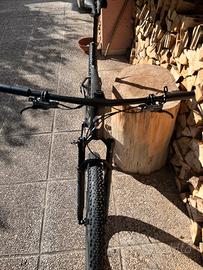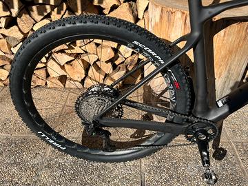 Vendo Scott Scale taglia XL (telaio in carbonio serie 940) con garanzia. Mtb completamente modificata con i seguenti componenti: Forcella Rockshox Sid SL 100 mm 2 posizioni con remoto a manubrio; Gruppo Shimano XT 12; Freni XT M8200 (ultima versione) con dischi 180/160mm; Reggisella telescopico Fox Transfer SL 125 mm; Manubrio carbon integrato Syncros Fraser DC 76 cm; Ruote carbon artigianali canale da 30 da 1300 grammi; Copertoni Pirelli Rc con mousse Tubolight Diamana. Eventuali downgrade con sconto sul prezzo. Percorsi 100 km, bicicletta perfetta. No pedali, no sella.