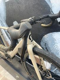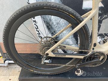 CARATTERISTICHE PRINCIPALI Forcella Solace Gravel eRIDE HMX Flatmount Disc, 1 1/4″-1 1/2″ Excentric Carbon steerer Motore TQ HPR50 Mid Motor drive 50Nm max Torque / EU: 25kmh / US: 28mph Cambio SRAM RIVAL eTap AXS HRD Shift-Brake System Ruote Syncros Capital 1.0 40e Disc, 24 Front 12x100mmTA /24 Rear 12x142mmTA Pneumatici Schwalbe G-One Overland EVO, 700x50C Schwalbe G-One Overland EVO, 700x50C ciclo con 1900 km garanzia ufficiale 5 anni