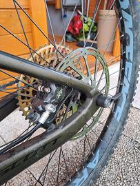 Bicicletta in ordine, in foto monta ruote da 27.5 ma viene venduta con le 29. Escursione sospensioni da 130, bloccaggio in tre posizioni con comando al manubrio. Reggisella telescopico. Mezzo leggero in salita e robusto in discesa, io sono alto 1.75. Valuto scambio con Enduro anche 27.5.