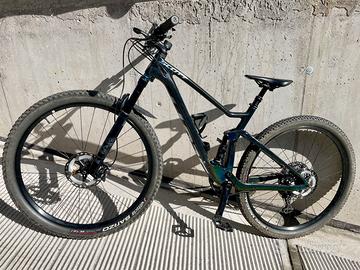 La bici da 29" è equipaggiata con una trasmissione Shimano a 12 velocita (10-51 T), ammortizzatori FOX con un sistema di sospensione.