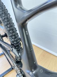 Scott Spark 910 taglia M del 2022 l'ultimo modello di casa Scott con ammortizzatore integrato, tenuta in ottime condizioni e manutenzionata periodicamente dal precedente proprietario, sospensioni revisionate da pochi mesi, pneumatico posteriore e manopole nuove appena sostituite. Tutto è funzionante ed è montata come da catalogo con gruppo e freni Shimano XT, sospensioni Fox da 130mm di escursione, la bici perfetta per chi cerca una cross country/trail in carbonio. Vendiamo completa di documenti originali del primo proprietario.
