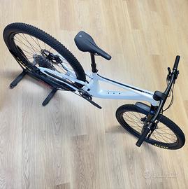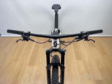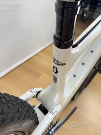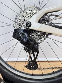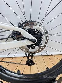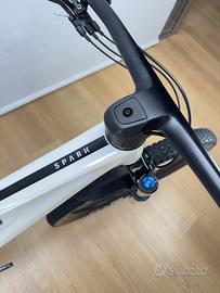 Scott Spark 920 del 2022 tenuta in modo perfetto con telaio completamente pellicolato ChamaleonSkin, ruote in carbonio Syncros Revelstoke 1.0 con mozzi Dt Swiss 370, manubrio in carbonio Syncros integrato, gruppo Sram Gx AXS elettronico a 12 velocità. Il telaio presenta dei segni visibili in foto ma sono sulla pellicola una volta rimossi è tutto perfettamente integro ed anche la meccanica è in buono stato ma verrà ulteriormente ricontrollata prima della consegna o spedizione. Taglia S adatta per altezze al di sotto di 171 cm.