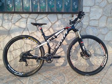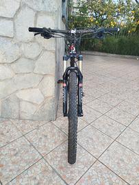 Taglia: M Ruote: 29 pollici Telaio: Triangolo anteriore in carbonio, carro posteriore in alluminio. Forcella: FOX con blocco a manubrio. Ammortizzatore: RockShox (posteriore). Freni: A disco idraulici. Reggisella: Telescopico incluso. La bici è in buone condizioni e pronta all'uso. Contattami per maggiori informazioni o per vederla di persona.