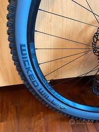 Bici tenuta in maniera maniacale. Ruote tubeless, montata come da descrizione Prezzo non trattabile Telaio: Spark Carbon HMF Mainframe with Alloy 6011 Swingarm Integrated Suspension Technology Flex Pivot / Adjustable head angle Syncros Cable Integration System BB92 / UDH Interface / 12x148mm with 55mm Chainline. Forcella: RockShox Pike Select RL3 Air Custom Charger 3-Mode Damper 15x110mm Maxle Lite / 42mm offset / Tapered steerer Lockout / Reb. Adj. / 130mm travel. Amm. posteriore: RockShox Deluxe Select RL3 Trunnion 3 modes / Lockout-Trail-Descend Debon Air / Reb. Adj. Travel 120mm / T165X45mm. Telecomando: SCOTT TwinLoc 2 Technology Suspension & Dropper Remote 3 Suspension modes. Deragliatore post.: SRAM NX Eagle 12 Speed. Leve cambio: SRAM SX Eagle Trigger. Guarnitura: SRAM X1 Eagle DUB 55mm CL / 32T. Movimento Centrale: SRAM DUB PF 92 MTB Wide / shell 41x92mm. Catena: SRAM CN NX Eagle. Cassetta: SRAM SX-PG1210 / 11-50 T. Freni: Shimano MT501 Disc. Disco freno: Shimano SM-RT54 CL / F&R 180mm. Manubrio: Syncros Fraser 2.0 DC Alloy 6061 D.B. mini Rise / back sweep 8° / 760mm Syncros Pro lock-on grips. Attacco manubrio: Syncros DC 2.0 Syncros Cable Integration System 0° rise / 6061 Alloy / 31.8mm / 1 1/8". Reggisella: Syncros Duncan Dropper Post 2.5 31.6mm / S & M size 125mm / L & XL size 150mm. Sella: Syncros Tofino 2.5 Regular. Serie sterzo: Syncros - Acros Angle adjust & Cable Routing HS System +-0.6° head angle adjustment ZS56/28.6 – ZS56/40 MTB. Mozzo ant.: Formula CL-811 / 15x110mm. Mozzo post.: Formula CL-148S / 12x148mm Syncros Axle w/Removable Lever with 6mm Allen, T30 and T25 Tools. Raggi: Stainless Black 15G / 1.8mm. Cerchio: Syncros X-30SE / 32H / 30mm Tubeless ready. Gomma ant.: Schwalbe Wicked Will 29x2.4" EVO Super Ground / TLE / 67EPI / Addix Speed Grip. Gomma post.: Schwalbe Wicked Will 29x2.4" EVO Super Ground / TLE / 67EPI / Addix Speed Grip. Peso in kg (approx.): 13.6 (Tubless setup). Peso in lbs (approx.): 29.98 (Tubless setup). Colore: nero.
