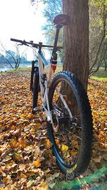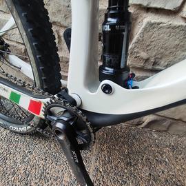 Telaio Spark RC in Carbonio, forcella Rochshok Sid 110mm, ammortizzatore FOX EVOL,, TwinLoc, Gruppo COMPLETO Shimano XTR con trasmissione 12 velocità, ruote Syncros Silverton, componentistica Syncros.