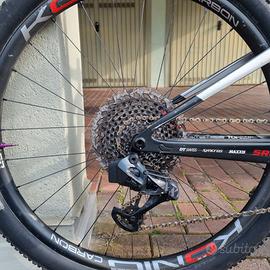 Scott Spark RC WC, edizione speciale Nino Schurter. Vendo a 2000 euro senza ruote. Con ruote a euro 2400 Taglia M. Telaio carbonio top di gamma. Cambio elettronico Sram xx1 axs. Cerchi carbonio Konig con mozzi Dt Swiss 240s. Pedivelle Leonardi Capo. Forcella Rock Shox Sid Ultimate 120 mm (revisionata e con kit Andreani). Appena sostituiti: movimento centrale, pacco pignoni, corona con Leonardi racing e catena con originali Sram. Posso spedire.