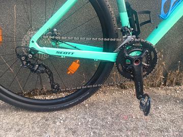 Ottime condizioni, comprata luglio 2025. Piccoli segni di usura, borselli e pedali non inclusi. no offerte ridicole. Telaio Telaio: Speedster Gravel / D.Butted 6061 Alloy / SCOTT Gravel geometry / Replaceable Derailleur Hanger / Internal cable routing Syncros fender kit ready Forcella Speedster Gravel HMF Flatmount Disc / 1 1/4"-1 1/2" Eccentric Carbon steerer Trasmissione Cambio posteriore: Shimano GRX RD-RX400 / 20 velocità Deragliatore anteriore: Shimano GRX FD-RX400-F Leve del cambio: Shimano GRX ST-RX400 Disc / 20 veloctità Guarnitura: Shimano GRX FC-RX600-10 / 46x30 Movimento Centrale: Shimano BB-RS500 Catena: KMC X10 Cassetta pignoni: Shimano CS-HG500 / 10v 11-34 Freni Freni: Shimano BR-RX400, a disco idraulico Disco del freno: Shimano SM-RT70 CL rotor 160/F and 160/R Zona sterzo Manubrio: Syncros Creston 2.0 X / Alluminio 31.8mm Attacco manubrio: Syncros RR2.5 1 1/4" / 31.8mm Serie sterzo: Acros AIF-1133 Zona sella Reggisella: Syncros RR2.5 27.2/350mm Sella: Syncros Tofino Regular 2.5 Ruote Mozzo anteriore: Formula Team II CL Disc 28 H Mozzo posteriore: Formula Team II CL Disc 28 H Raggi: Black 2mm Cerchio: Syncros Race X25 Disc / 28 Front / 28 Rear Pneumatico anteriore: Schwalbe G-One Bite Performance 700x45C Pneumatico posteriore: Schwalbe G-One Bite Performance 700x45C Altre informazioni Peso: 10.6kg