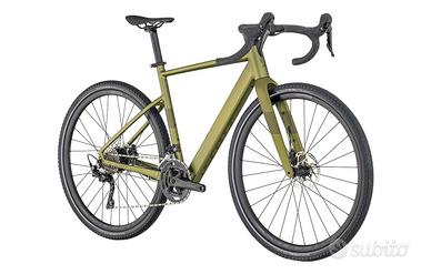 NON SI EFFETTUANO PERMUTE. ------------------------------ Per la rateizzazione con la nostra Formula GOEBIKE, visita il nostro sito per maggiori dettagli! ------------------------------ Display: Mahle iWoc ONE, Bluetooth / Dedicated Smartphone app Motore: Mahle X35+ Motor Hub drive 40Nm max Torque / EU: 25kmh Batteria: Mahle Internal 36V-250Wh Telaio: Speedster Gravel eRIDE Disc / D.Butted 6061 Alloy, Range Extender Ready Forcella: Carbon Gravel eRIDE HMX Flatmount Disc, 1 1/4″-1 1/2″ Eccentric Carbon steerer Dergliatore: Shimano GRX RD-RX400, 20 Speed Leve del Cambio: Shimano GRX ST-RX400 Disc, 20 Speed Cassetta: Shimano CS-HG50011-34 T Freni: Shimano BR-RX410 Hyd. Disc Disco del Freno: Shimano SM-RT64 CL rotor 160/F and SM-RT56 6 bolt 160/R Attacco Manubrio: Syncros RR2.5 1 1/4″ / four Bolt 31.8mm Reggisella: Syncros RR2.5 31.6/350mm Sella: Syncros Tofino Regular 2.0 Serie Sterzo: Acros AIF-1113 Ruote: Syncros Capital 2.0 Disc, 28 Front 12x100mmTA /32 Rear Mahle X35 bolt axle 135mm Pneumatici: Schwalbe G-One Overland PERF, 700x45C ------------------------------ DISPONIBILITA IMMEDIATA: si effettuano spedizioni in tutta Italia, isole comprese, tramite corriere espresso assicurato.