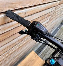 Scott Strike eRide 910 EVO taglia S Motore Bosch Performance CX con batteria da 625 Wh. Telaio in alluminio con 150 mm di escursione. Trasmissione Shimano XT/Deore, 1x12 velocità. Sospensione Fox. Freni a disco idraulici Sram DB8, 200/200 mm. km totali 1550 Telaio: Alluminio: Telaio in lega e link, Virtual 4 link kinematic VLK, 29x2.6 / Boost 148x12mm UDH, 150mm di escursione / Bosch Gen4 / Batteria integrata rimovibile, tubo sterzo da 1,8", supporto centrale per cavalletto, cavo integrato. Forcella: Fox 36 Rhythm Air, Grip 3 / 3 modalità / asse QR 15x110 mm, sterzo conico / Reb. Regolazione / Lockout / 150 mm di escursione Ammortizzatori: Fox Float EVOL eRIDE Trunnion, 3 modalità / Lockout-Trail-Downend, DPS / Reb. Regolazione, escursione 150 mm / 205x55 mm Motore: Bosch Performance CX, SmartSystem, 85 Nm Batteria: PowerTube 750Wh Controllo: Bosch LED Remote e Kiox 300 Leva del deragliatore: Shimano SL-M6100, 1x12 velocità Deragliatore posteriore: Shimano XT