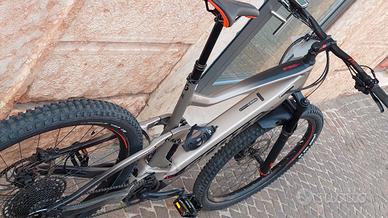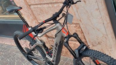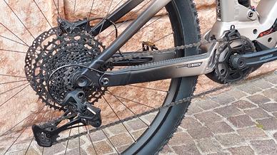 E-mtb biammortizzata Scott Strike Eride XL bosch cx85nm, 625Wh con possibilità di estendere fino a 1125Wh, display Purion, forcella Marzocchi Z2 150mm, ammo x-fusion, sistema twinloc, freni Shimano 4 pistoni 203-203mm, cambio Sx 13v, dropper con comando al manubrio.