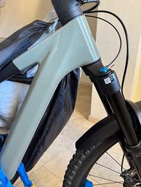 Vendo Scott Voltage 910 Eride acquistata nel 2025, Taglia M, telaio completamente in carbonio. Praticamente perfetta, si segnala solo un piccolo graffiettino laterale visibile in una delle foto, per il resto è perfetta. Nessun difetto, sempre tagliandata e visionata da negozio ufficiale. Upgrade da segnalare manubrio in carbonio Renthal da 760 e dischi Shimano Xtr top di gamma, ma consegno anche tutti i pezzi originali. Bici leggera é perfetta per tutti i tipi di percorsi. Non spedisco ma consegno a mano dopo prova e visione CARATTERISTICHE PRINCIPALI Telaio Voltage eRIDE Carbon HMF Forcella FOX 36 Float Rhythm 160 mm FOX Nude 6T EVOL, TwinLoc, 155 mm Shimano XT-Deore 12 velocità Freni a disco Shimano Deore a 4 pistoncini Pneumatici Maxxis Foldable Per le specifiche e le geometrie potete andare sul sito Scott