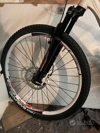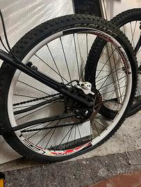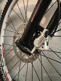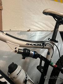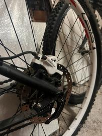 MTB scout bi-ammortizzata con freni a disco shimano. La bici ha il telaio posteriore in carbonio. È stata usata poche volte ma ha comunque i suoi anni. Gomme e pastiglie dei freni nuove appena cambiate. Taglia 26 PREZZO TRATTABILE
