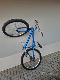 La bici monta shimano mt 401 con pompa shimano, sella collective bike, manopole odi viola pegs orgininale se bikes con grip sia li che sul freim, bici molto stabile nelle combo.