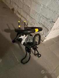 Seggiolino bici molto comodo, grazie al sistema di istallazione multiplo sia sulla canna orizzontale della bici che tra sella e manubrio ha dato a bambini piccoli grazie al fatto che il bambino resta tra le braccia di chi guida