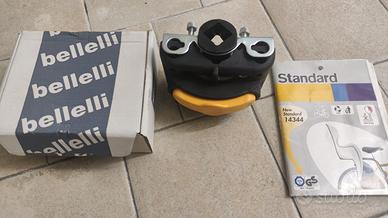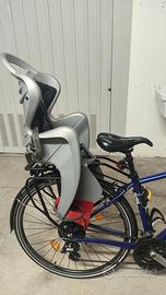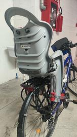 Seggilolino bici posteriore Belelli da agganciare al telaio della bici con l'apposito attacco Multifix, in questo modo il seggiolino è ancorato solo al telaio della bici e rimane sospeso sopra la ruota posteriore. Non è necessario il portapacchi!